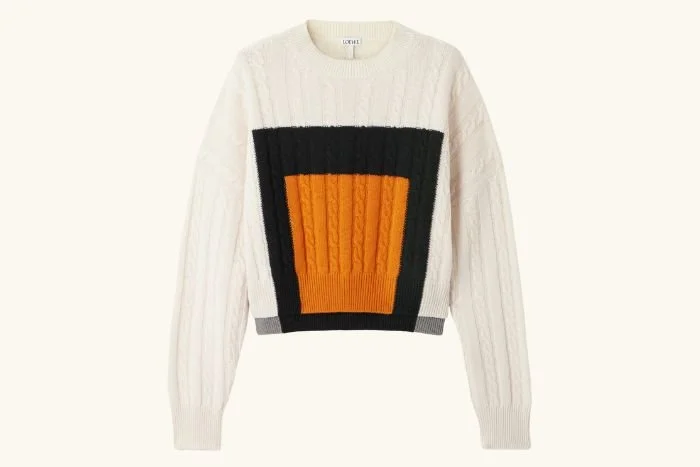 For the ultimate in luxury knitwear, this Loewe masterpiece from Net-A-Porter features eye-catching color-blocking and intricate cable-knit detailing. A show-stopping piece that transcends seasonal trends.